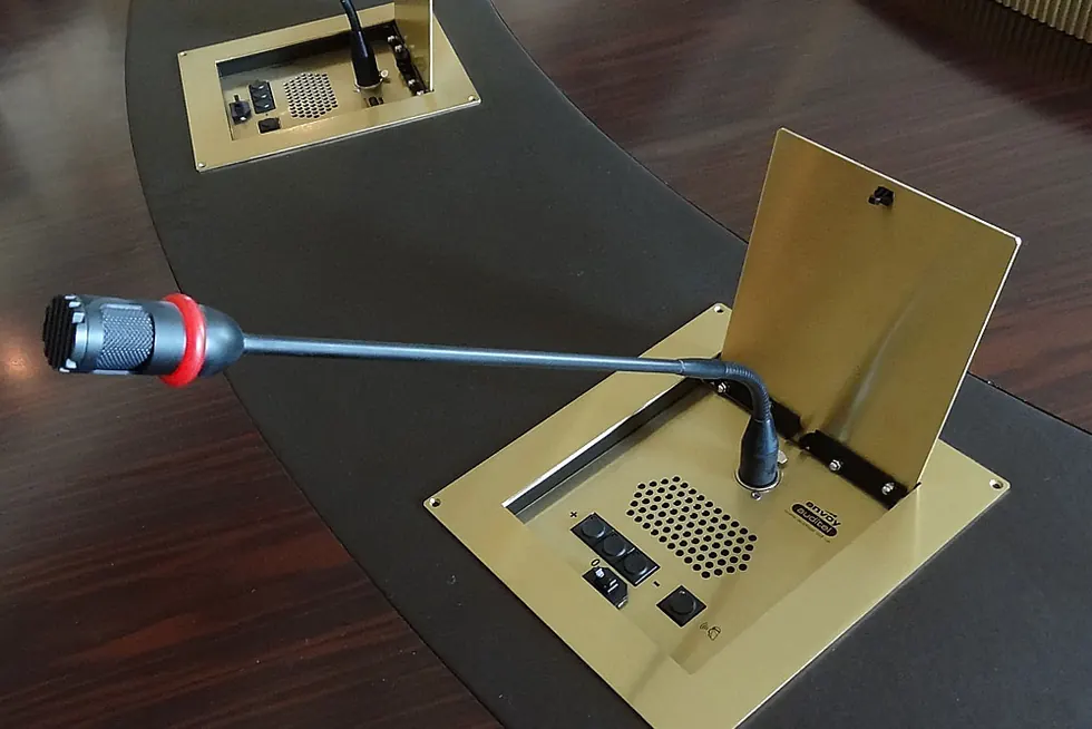 The Conference Hall required a full conferencing solution to allow for multilanguage translation, fixed delegate units with LCD display screen for messages and that were in-keeping with the environment. Also 12 language translation booths and 1,500 listening posts for the translation of the meeting into the tiered seating. The meetings are to be webcasted, televised and displayed on large screen monitors around the hall.
