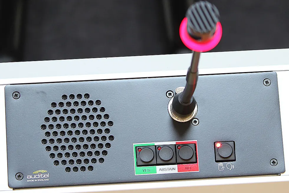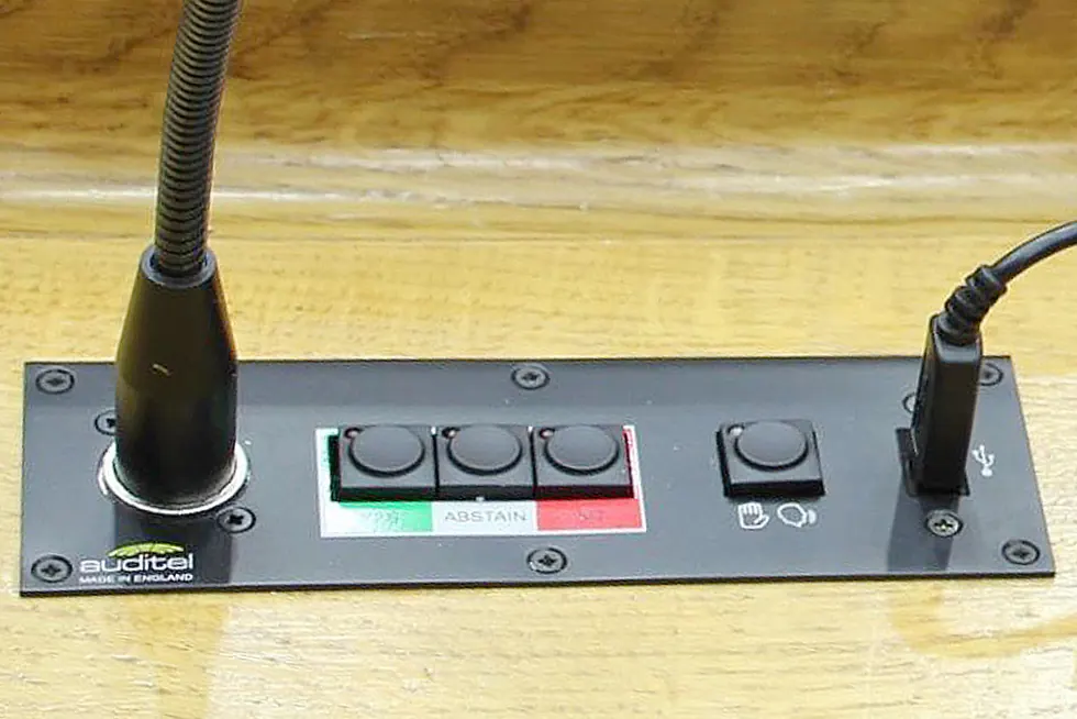 - Custom Digital Microphones: 72 microphones. Each digital microphone has been custom designed, including a 3 way electronic voting system, with custom wording for the voting and control buttons.